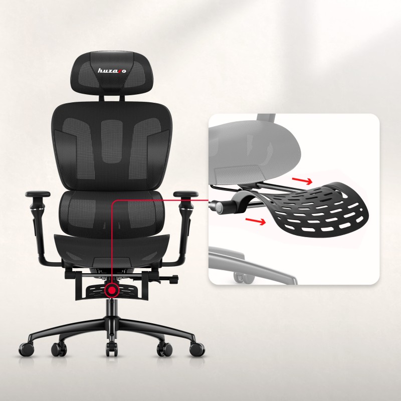 - Belüftetes, extrem strapazierfähiges Mesh-HD-Material in den Bereichen, in denen der Körper auf der Sitzfläche aufliegt