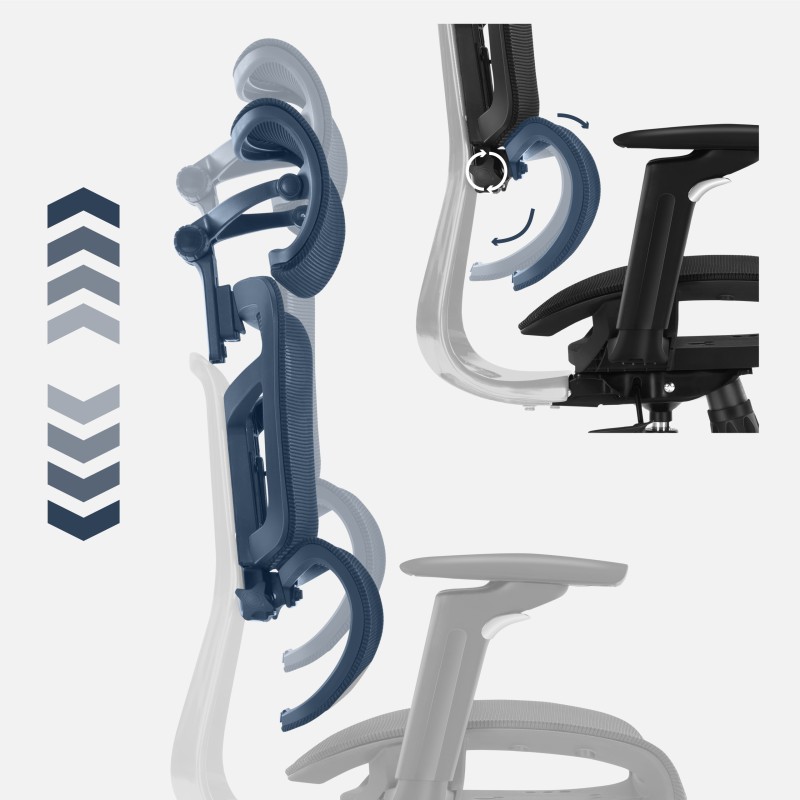 - Kopfstütze mit 3D-Verstellung gewährleistet eine ergonomische Positionierung von Kopf und Hals