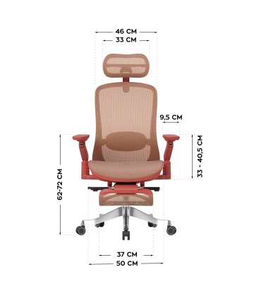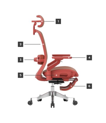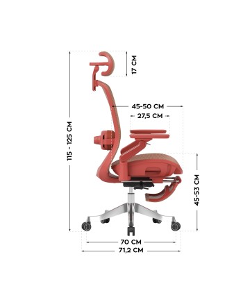 - Kopfstütze: Höhenverstellung (5 cm), Tiefe (6 cm), 2 Neigungswinkel (bis zu 60°)
